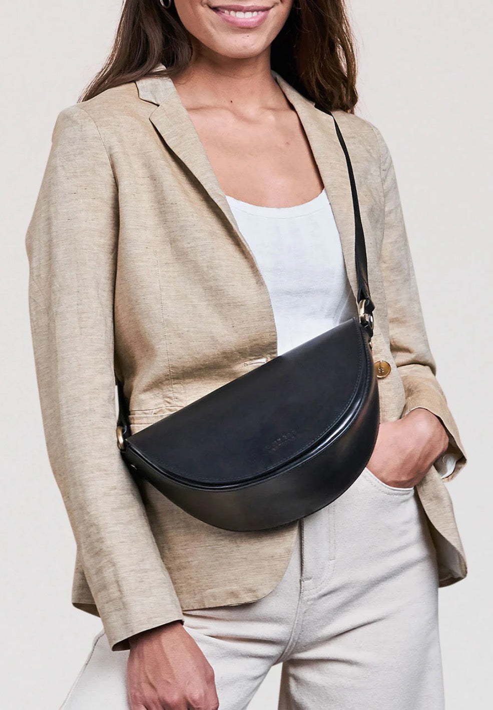 The Laura Bag from O MY BAG AMSTERDAM embraces soft clean lines for timeless elegance. This semi-circle shaped handbag comes with two adjustable add-on straps, one full leather and one with a GOTS Certified Checkered Webbing Strap. She’s as versatile as can be – Laura works with every look, for every occasion! With plenty of room for your essentials, she’s a geometric beauty with a top zipper fastening that will keep your belongings safe and organised.